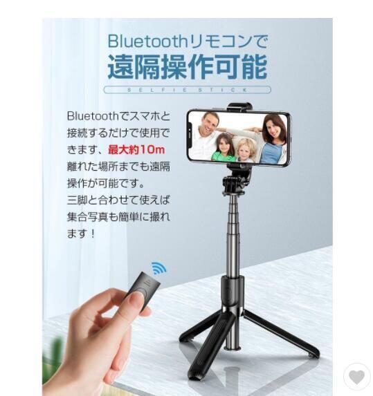 自撮り棒 三脚付き Bluetoothリモコン付き
