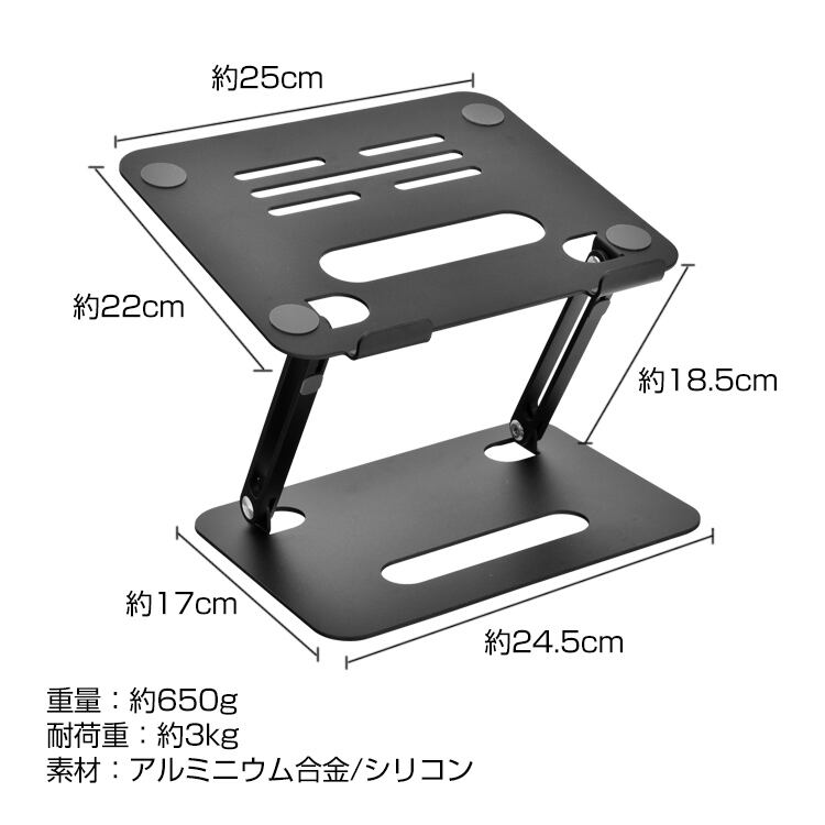 ノートパソコンスタンド PCスタンド 折り畳み アルミ合金 アルミニウム 7~17インチ